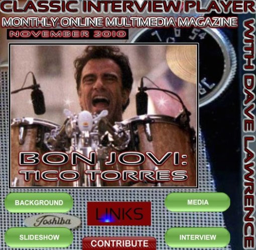 November issue of the Classic Interview Player out featuring a new 2010 interview with Bon Jovi’s Tico Torres. Listen on-demand, plus see ten cool live videos, a slideshow, links, background & other cool stuff.