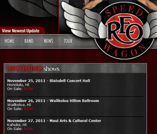 See REO live in Hawaii 11/25 in Honolulu at the Blaisdell Concert Hall, 11/26 at the Waikoloa on the Big Island, and 11/27 at the MACC in Kahului.