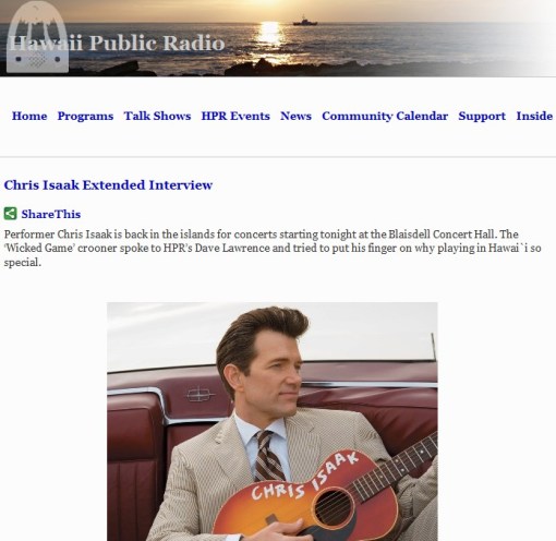 Hear my new interview with Chris Isaak, playing Honolulu tonight and Maui tomorrow