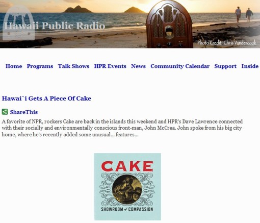 Hear a new interview today on HPR and online with rockers Cake, back in the islands this weekend