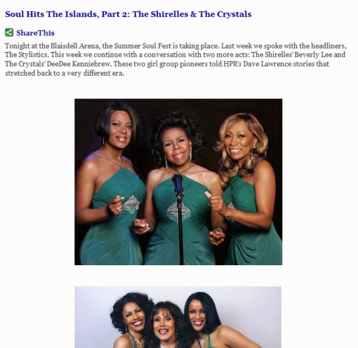 THIS AFTERNOON ON THE SHOW — GIRL GROUP PIONEERS THE SHIRELLES AND THE CRYSTALS