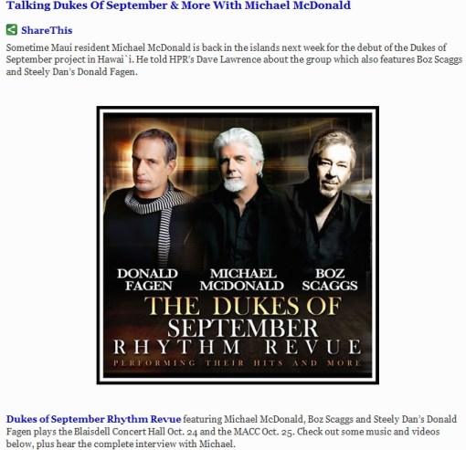 Hear my new interview with Michael McDonald ahead of his concerts in Hawaii