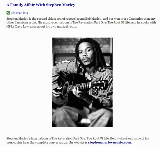 Hear my new interview with Stephen Marley – he tells fascinating stories of growing up Marley!