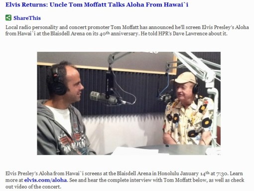 See my new video interview and learn about Elvis Presley with legendary Hawaii promoter Tom Moffatt!